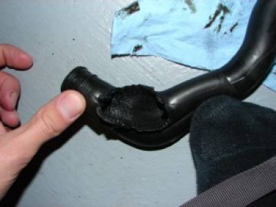 Vous trouverez ci-dessous des photos des problèmes courants rencontrés avec le système PCV 1.8T 20v. Une inspection rapide consiste à rechercher des fuites autour des tuyaux. Ces fuites sont généralement visibles en montrant des dépôts d'huile humide autour ou à proximité. La présence de dépôts d'huile humide sur un moteur 1.8T est un signe évident de fuite d'huile ou de suralimentation. Il est donc nécessaire d'examiner et de réparer rapidement le problème. Si vous trouvez des tuyaux humides et huilés sous l'admission, examinez les coudes des tuyaux, où vous trouverez des fissures ou des trous. Pour les réparer, remplacez les tuyaux. Cette opération peut s'avérer très coûteuse, car un tuyau est défectueux et d'autres tuyaux se fissureront inévitablement peu après ou lors de la dépose de tuyaux au même endroit. La deuxième option consiste à démonter complètement les systèmes en PVC et tous les tuyaux concernés. Ainsi, vous éviterez tout problème ultérieur et le coût de remplacement sera bien inférieur. Nous vous recommandons de vous débarrasser du PCV juste pour éviter des tracas.